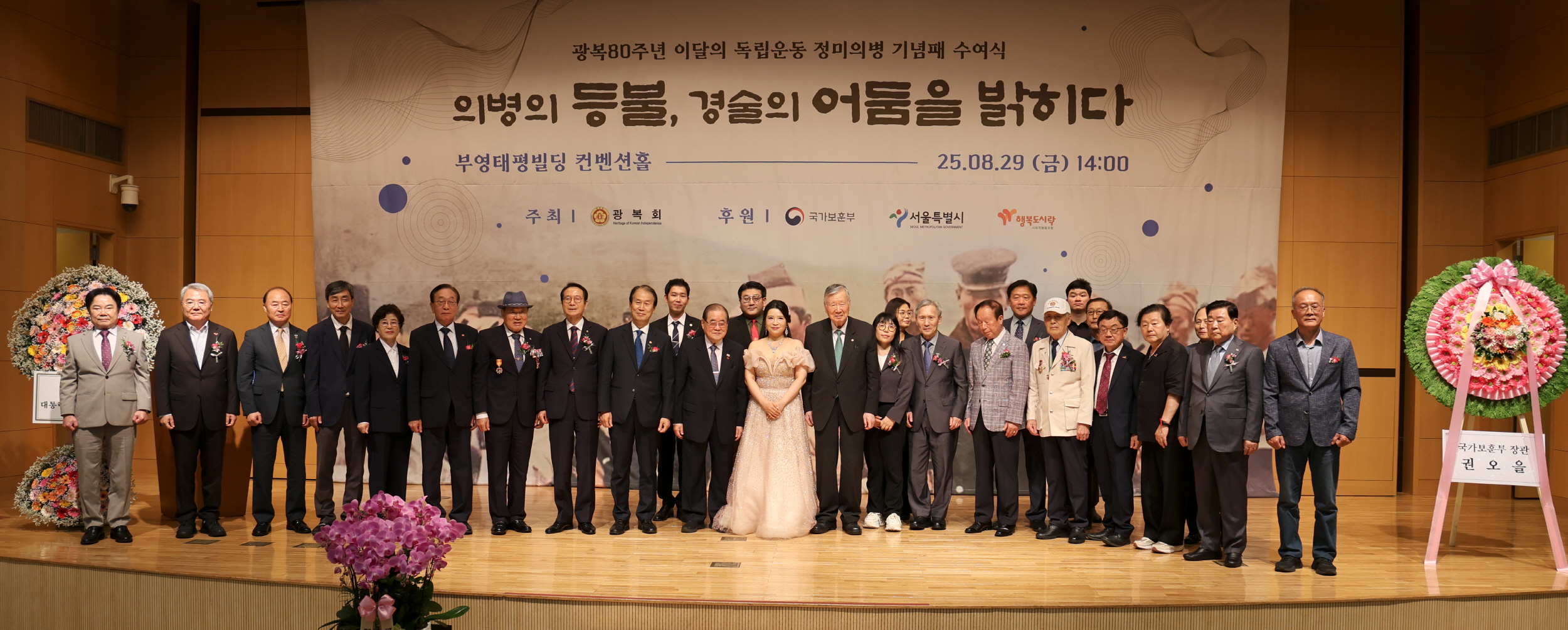 독립운동 유관단체 및 광복회원 250여명이 모인 가운데, ‘광복80주년 8월, 이달의 독립운동 정미의병’ 기념식을 개최했다.